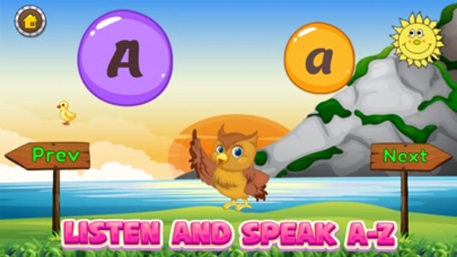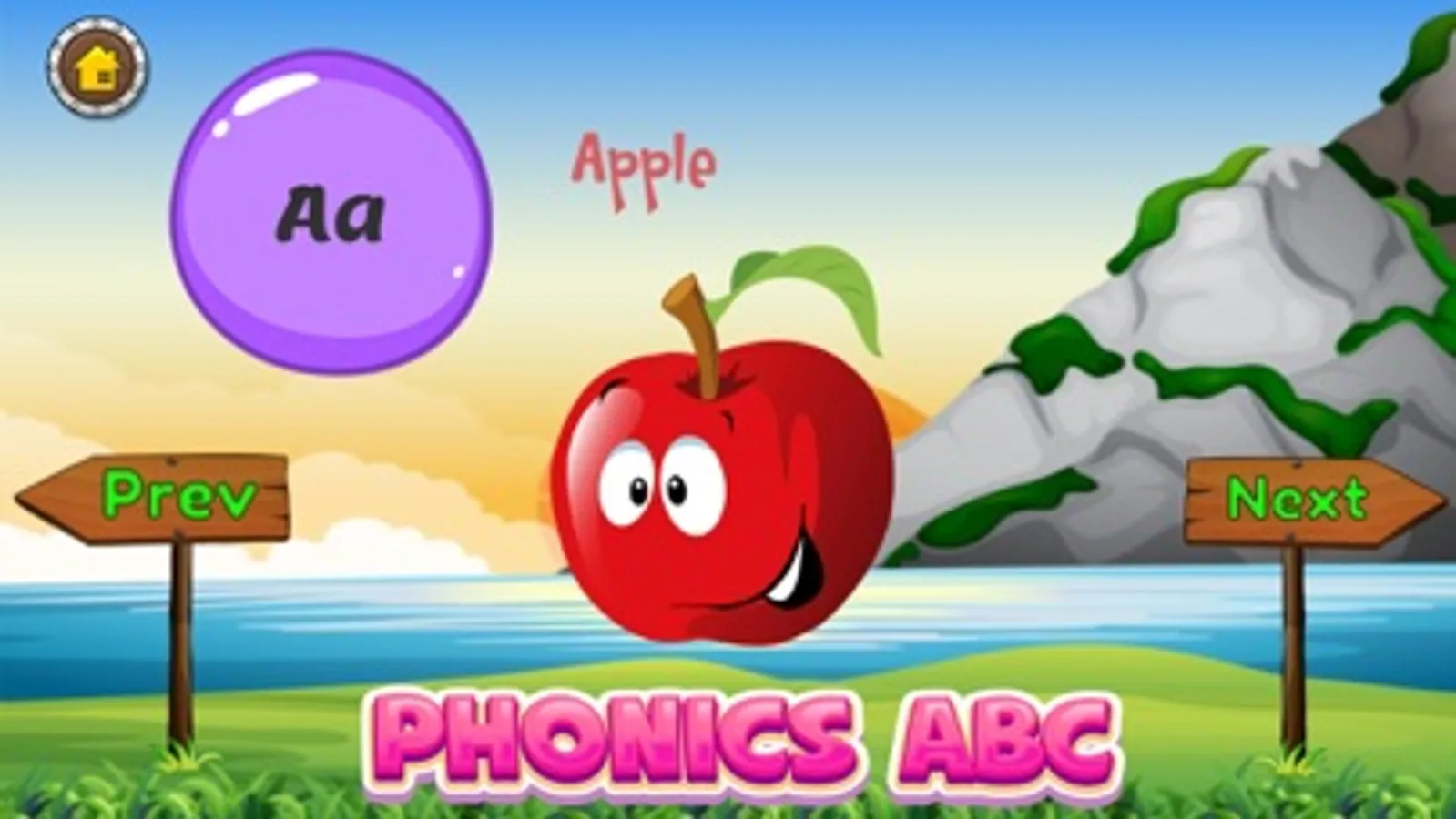 * Find the Correct Image - Kids are asked to choose which item among 3 items that its first letter is the same as the given letter. As for example, given letter A, and there are 3 items: apple, bunglon, and banana. If kids click the “Apple” item, it will be correct, otherwise it will be wrong!