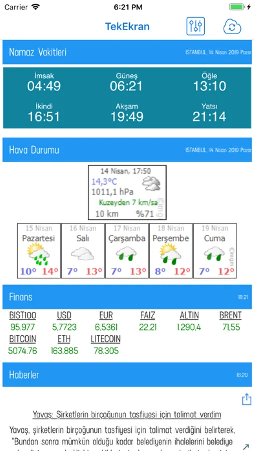 Gün içinde bakmak isteyebileceğimiz bilgiler minimalist bir tasarımla tek bir ekranda sunuluyor.