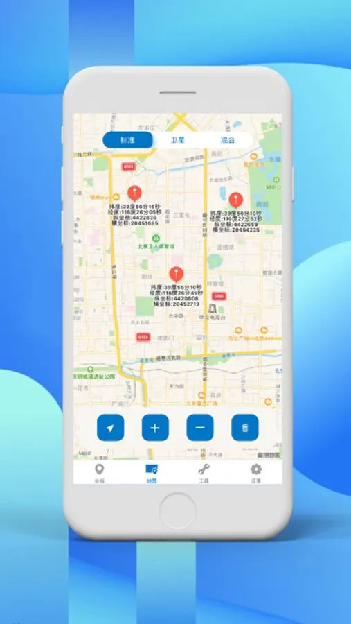 1.支持使用GPS或者网络进行定位,获取当前位置信息并提供地理坐标和高斯坐标显示.