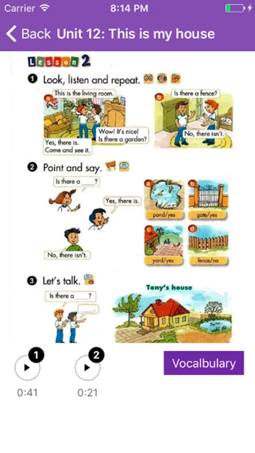 - Mỗi bài, mỗi phần có hình ảnh hiển thị cùng audio minh họa.