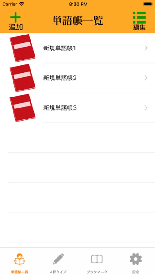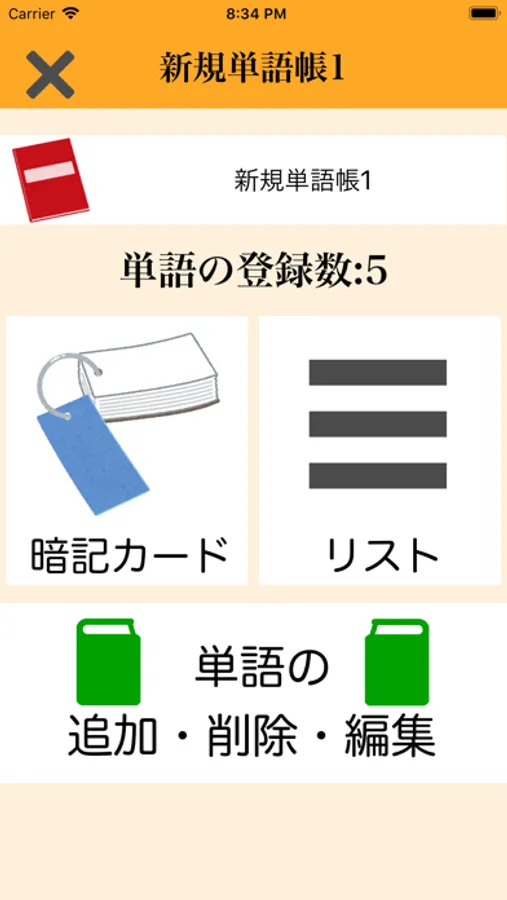 学習モードでは単語帳を作り、暗記カードかリストかどちらかお好きな方法で単語学習を進めていくことができます。単語帳は何個でも作ることができますので、目的・用途に分けて単語帳を作成することができます。