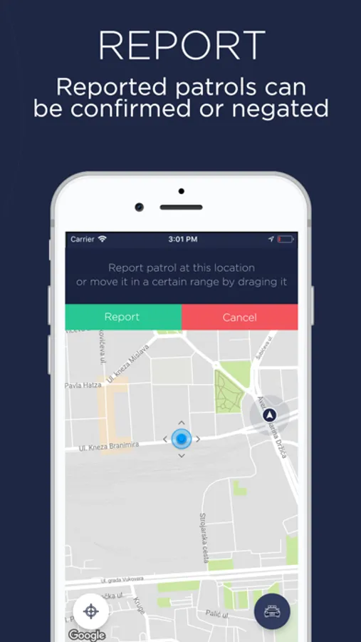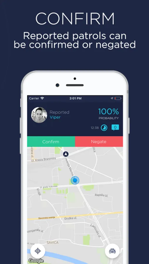 MyPatrol is app that allows its users to report a police patrol they saw with just one click and always be notified about patrols that were reported by other users. Every user can confirm or negate a patrol that had been reported as well.