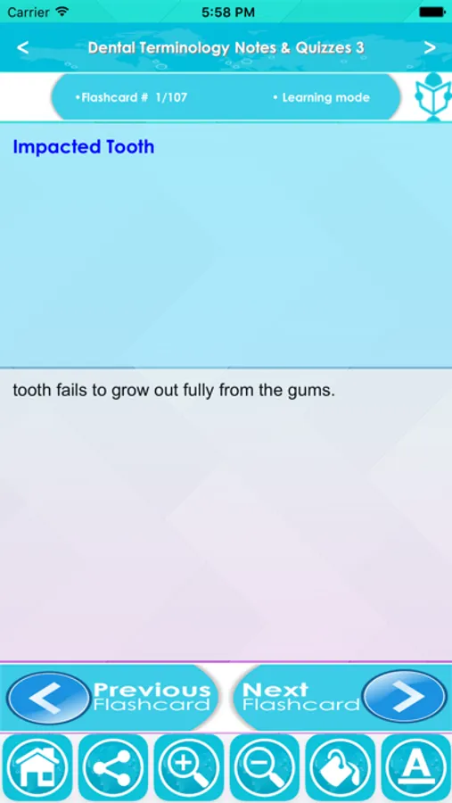 This app is a combination of sets, containing practice questions, study cards, terms & concepts for self learning & exam preparation on the topic of Dental Terminology.