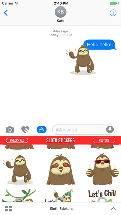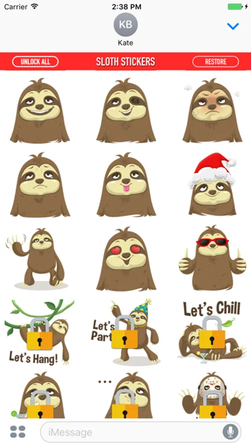 Say it with a sloth! Send your friends and family cute sloth emoji's!