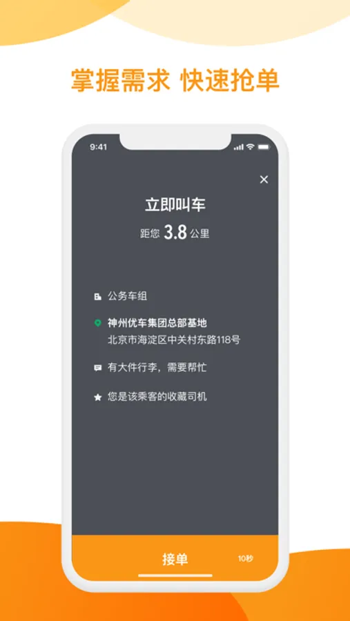 绝佳的专车平台,最佳的口碑支持,最安全的专车地位,最优质的订单供应,最好的机遇,尽在神州优驾(U+)司机端。