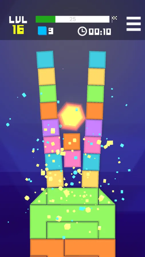 Balance a hexagon (a geometry-shape with six sides) while crushing, blasting, and destroying towers of colorful-blocks. Reach the flag at the bottom of the tower to win! Be careful, the tower can tumble and cause the hexa to trip into the abys. The game mechanic is a combination of geometry logic, puzzle, strategy. Relax and pick carefully which part to destroy. Sometimes the player might need to react quickly, so the game has arcade and reflex element as well.