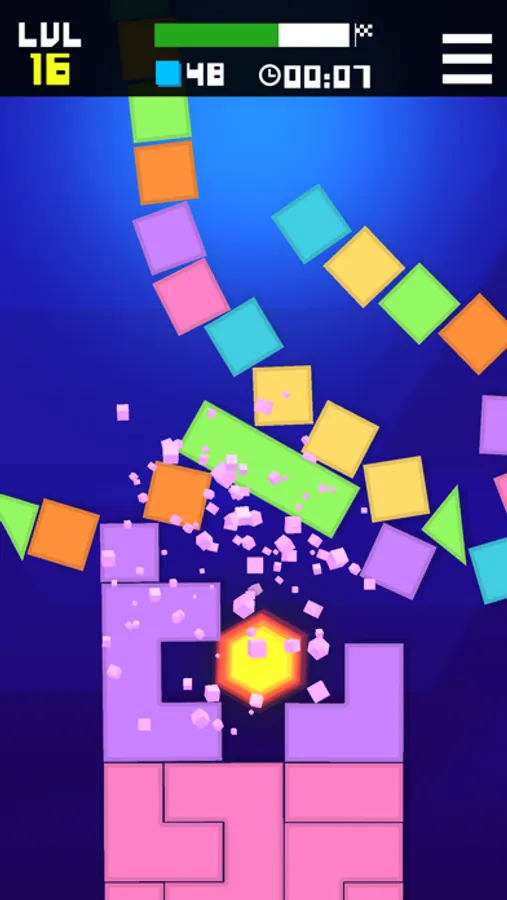 * Hand-picked sounds & special effects (the hexagon glows, things explodes with cool particle effects and gradient of colors).