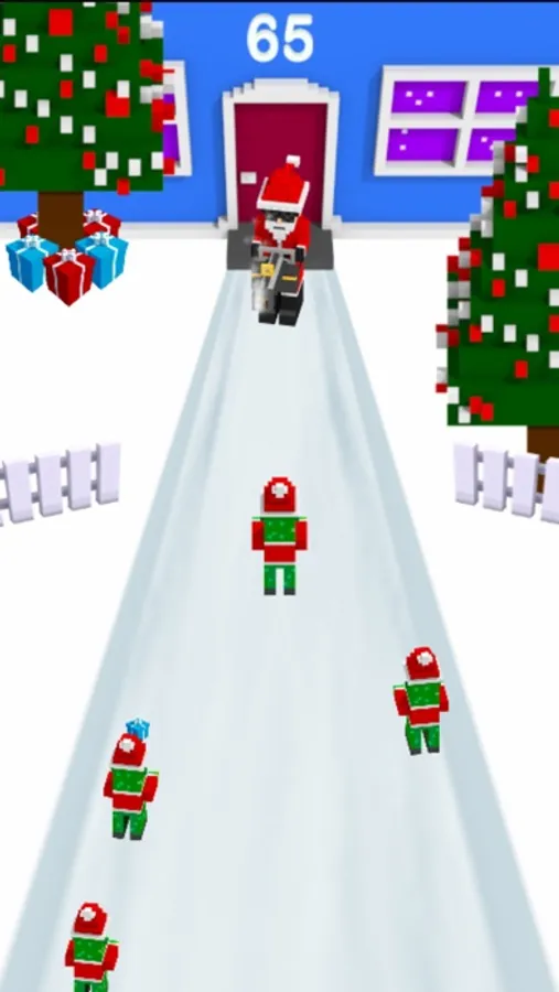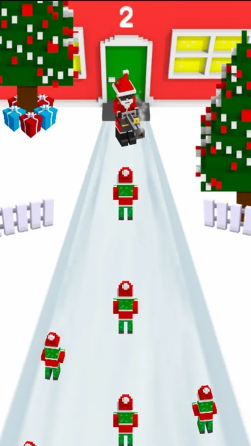 Swipe down, left and right to shoot presents at the Grinchlings, to stop them from entering the workshop.