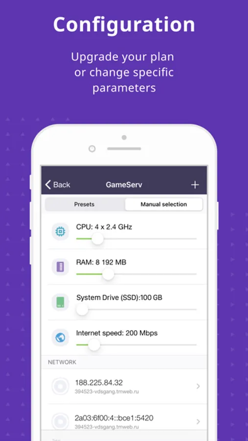 Manage your VDS/VPS from our app on any device, gain control over our virtual server resources and get a 24/7 assistance from the Timeweb support team.
