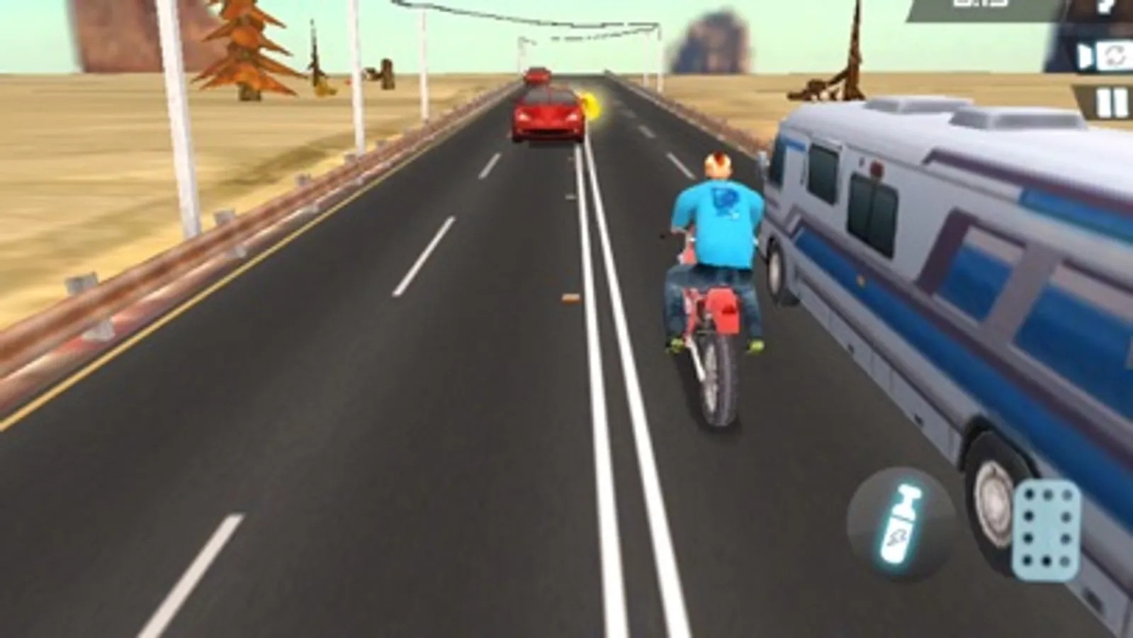 Real Moto Bike Racer takes the endless racing genre to a whole new level by adding a full career mode, first person view perspective, better graphics and real life recorded bike sounds. The essence of smooth arcade racing is still there but in the shell of the next generation. Ride your bike in the endless highway roads overtaking the traffic, upgrade and buy new bikes to beat the missions in career mode.