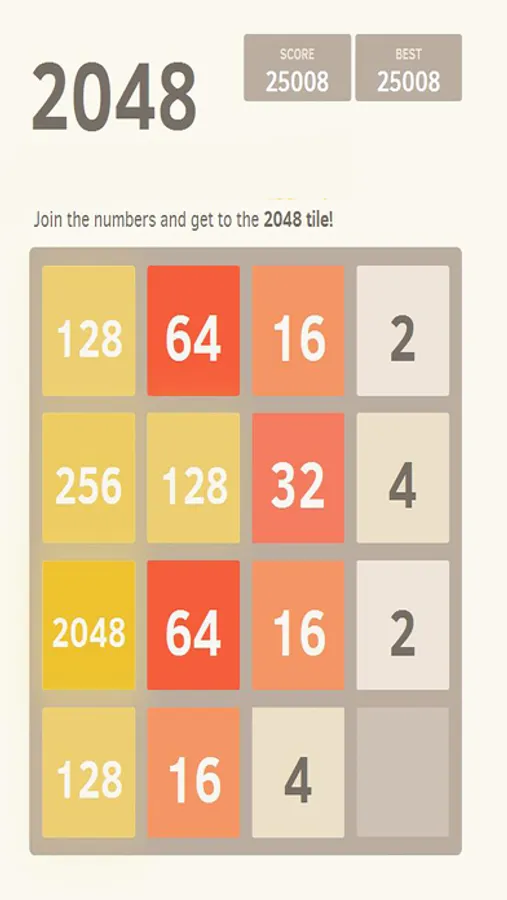 This 2048 number puzzle game is a fun, addictive and a very simple puzzle game. Join the numbers and get to the 2048 tile! Go and challenge yourself, try to get 2048