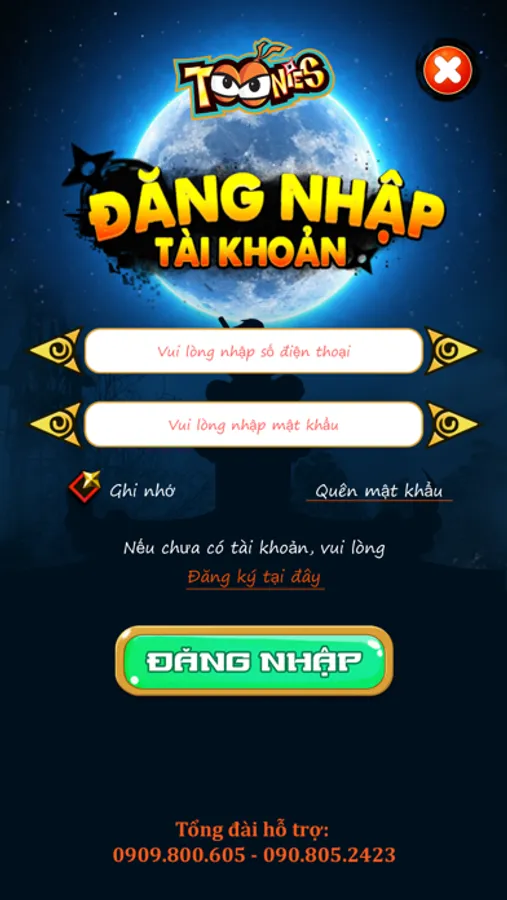 - Nếu Ninja có tài khoản rồi thì đăng nhập trực tiếp trên app. Nếu chưa có, Ninja truy cập vào website Toonies.vn để đăng kí tài khoản nhé.