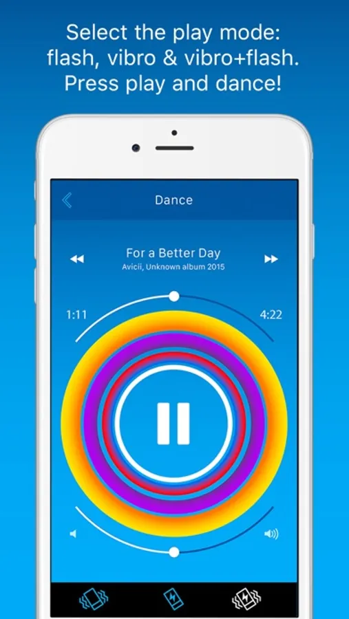 BW Dance app converts music into visual equalizer, vibration signals and flashing lights. The app gives you a chance to dance to the music. Just add a track to the playlist and select a play mode (flash, vibration & vibration+flash). Visual equalizer on the screen shows you the rhythm of the track.