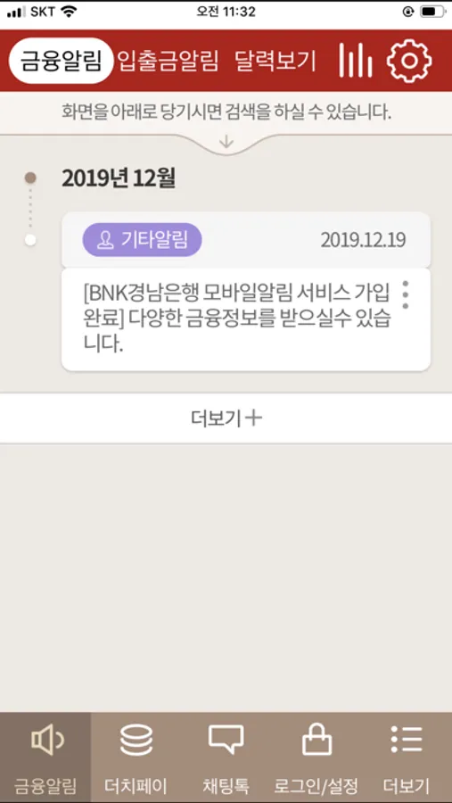 입출금알림, 대화, 채팅 기능을 더한 경남은행의 새로운 알림앱입니다.