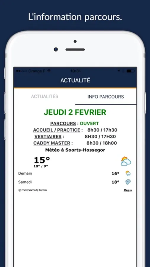 Bienvenue sur cette application dédiée au Golf d’Hossegor, vous y trouverez l’essentiel de notre Club, Actualités - Résultats - Départs - Réservations / Navigation simple et efficace.