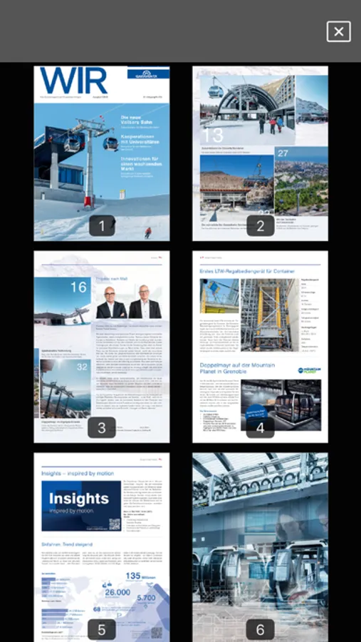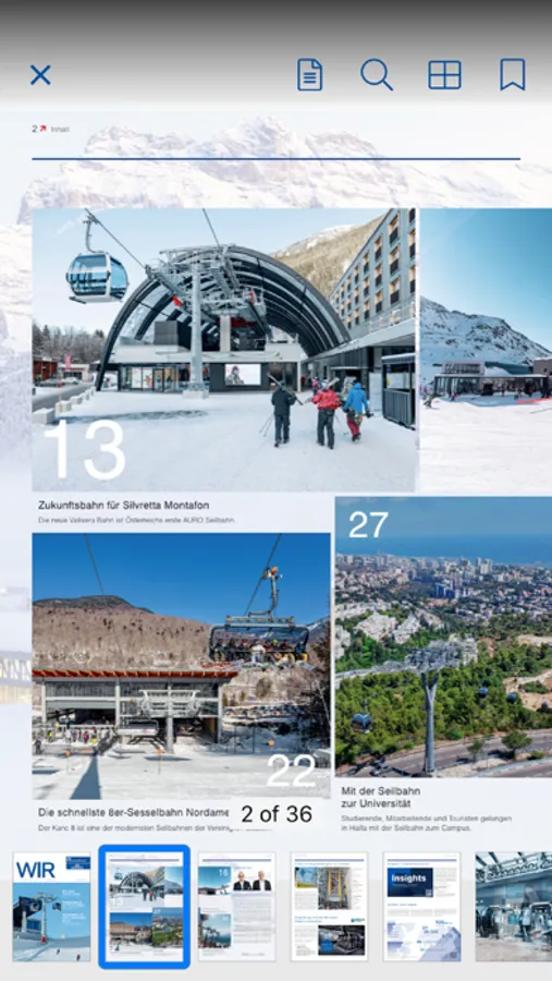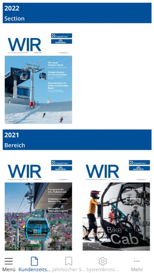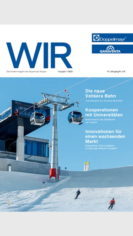Als Qualitäts-, Technologie- und Marktführer im Seilbahnbau betreibt Doppelmayr/Garaventa Produktionsstandorte sowie Vertriebs- und Serviceniederlassungen in mehr als 35 Ländern der Welt. Bis heute realisierte das Unternehmen über 14.800 Seilbahnsysteme für Kunden in 90 Staaten. Mit Flexibilität, Know-how und Pioniergeist ist die Gruppe allen Herausforderungen in traditionellen und neuen Märkten gewachsen. Mit der Doppelmayr/Garaventa App sind Sie immer auf dem Laufenden und erhalten die neuesten Ausgaben des WIR-Magazins sowie sämtliche Info-Broschüren direkt auf Ihr Smartphone oder Tablet. Weiterführende Links eröffnen Ihnen die ganze Welt der Seilbahnen - von YouTube-Videos über die interaktive Weltkarte bis hin zum Seilbahn-Konfigurator.