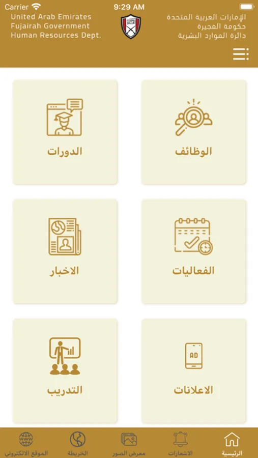 The Department of Human Resources – Fujairah Government have launched the smart phone application, which contains several choices to serve the public and simplifies containing of information regarding job vacancies and the newest training program and courses. Also the application contains news about the HR activities which they organize, agendas, national, social and formal events, the survey is also available regarding all concerning the application.