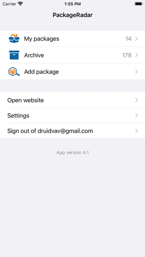 To log in to the app, use your e-mail and password from gdeposylka.ru. All information is automatically synced with the site.