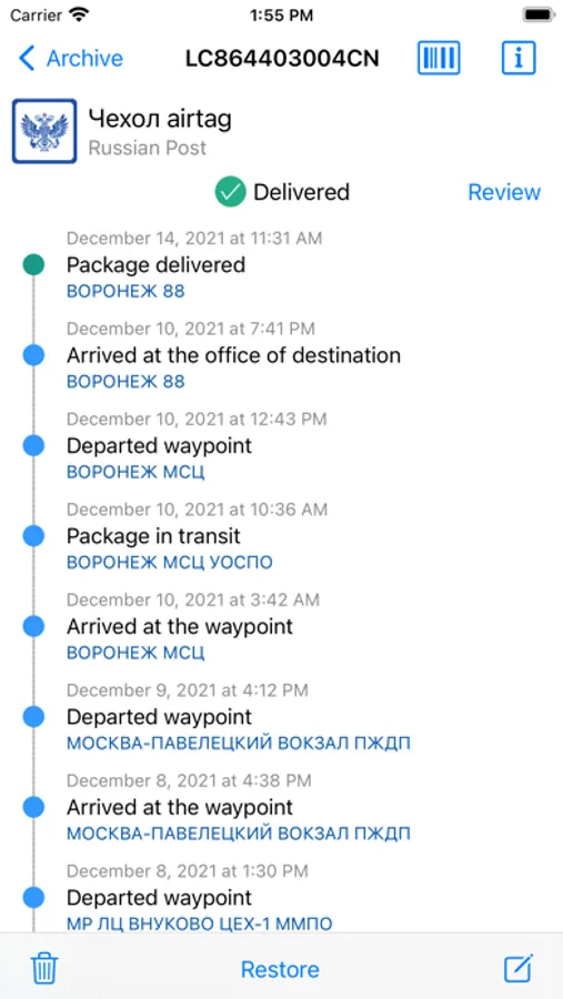 All functions of the application are completely free! You can track an unlimited number of packages and receive notifications without any additional commissions. We check parcels on the official websites of delivery services every 3-5 hours, so you will definitely not miss new information about the parcel.