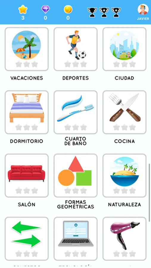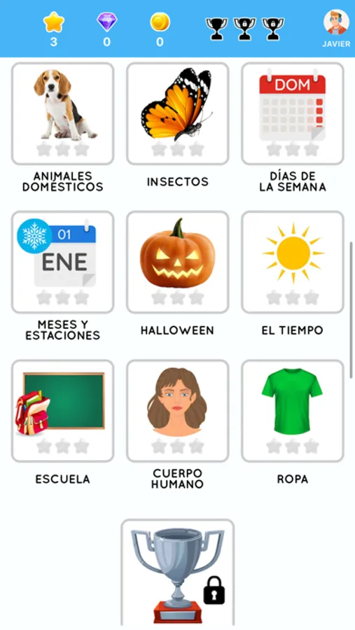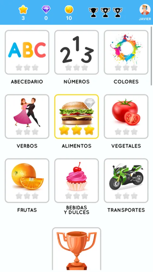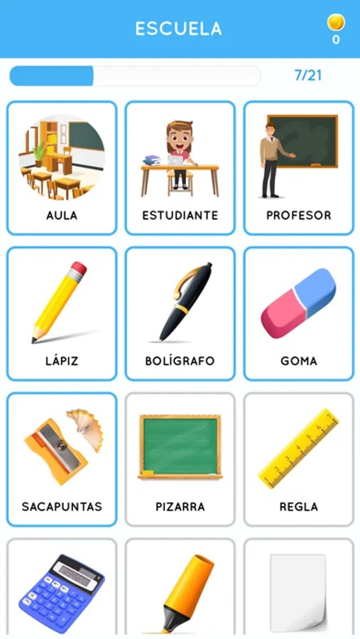 Basic: Alphabet letters , Numbers , Colors , Verbs , Food …