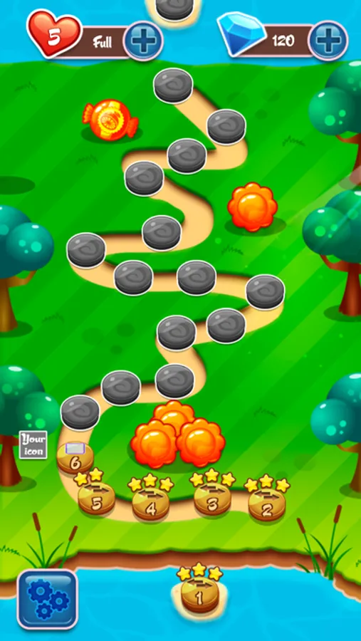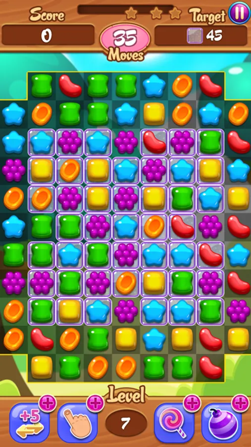 滑动任意果冻让三个或者三个以上的果冻糖果横竖相连即可消除,达到目标即可通关