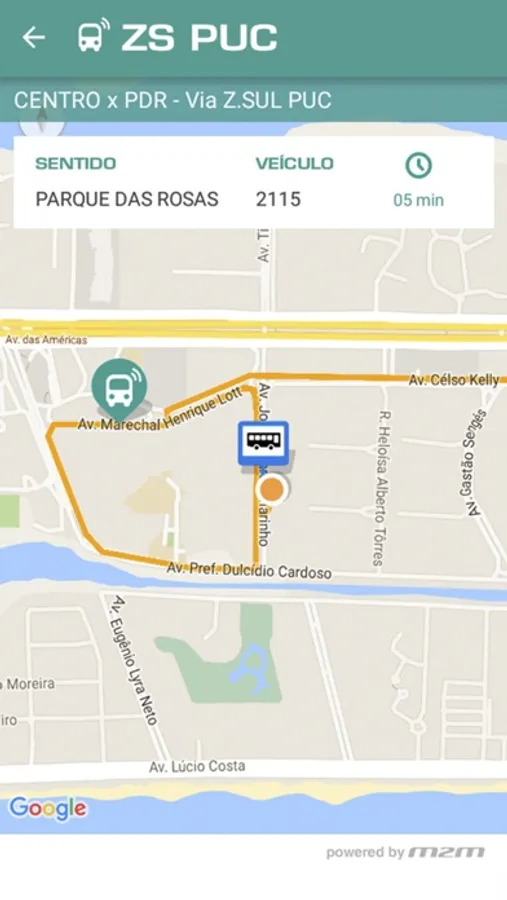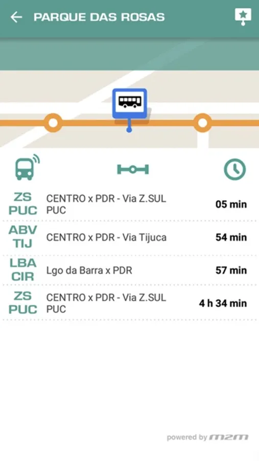 · Selecione o ponto de parada desejado e visualize as linhas que passam por este ponto e suas respectivas previsões de chegada;