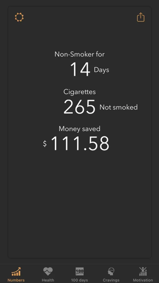 The widget quickly shows you the most important numbers of your non-smoking career.