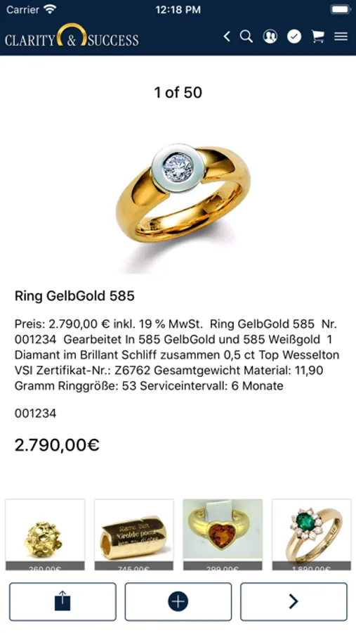 After the app has been successfully connected via the web service, it synchronizes the new product images for the activated product areas with each start. The images are stored locally on the internal memory of the mobile device. The product pictures are not available in the normal picture gallery of the device. Should the device be lost, the app can be locked locally in the jeweller management software.