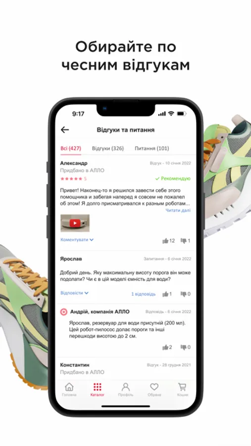 Тепер є можливість робити покупки та читати відгуки. Стежте за акціями, що діють в інтернет-магазині Алло, у нашому зручному додатку для ваших пристроїв. Також, у додатку доступна докладна інформація про всі наші сервісні продукти, які дозволять Вам не тільки захистити свої пристрої, але й заощадити при покупці нового гаджета.