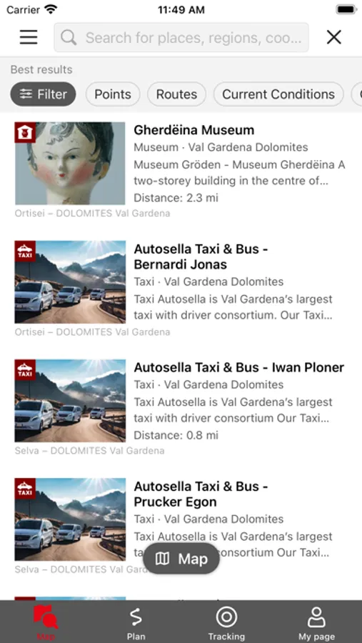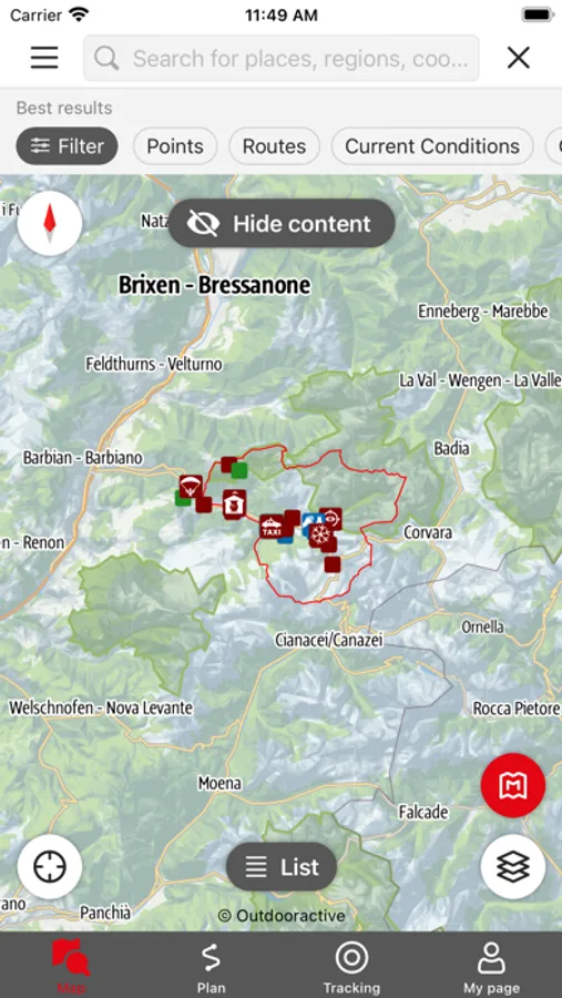 The heart of the Outdoor App Val Gardena is its large and constantly expanding official excursion database, which is continually maintained and updated by the three Tourist Offices of Val Gardena (Ortisei, S. Cristina and Selva Val Gardena). You can get detailed descriptions, technical information, maps and GPS directions that you can even save offline for your summer and winter outdoor activities in Val Gardena and the Dolomites.