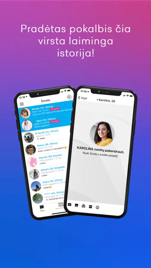 Pažintys programėlė leidžia paprastai ir nemokamai naudotis svarbiausiomis funkcijomis telefone: