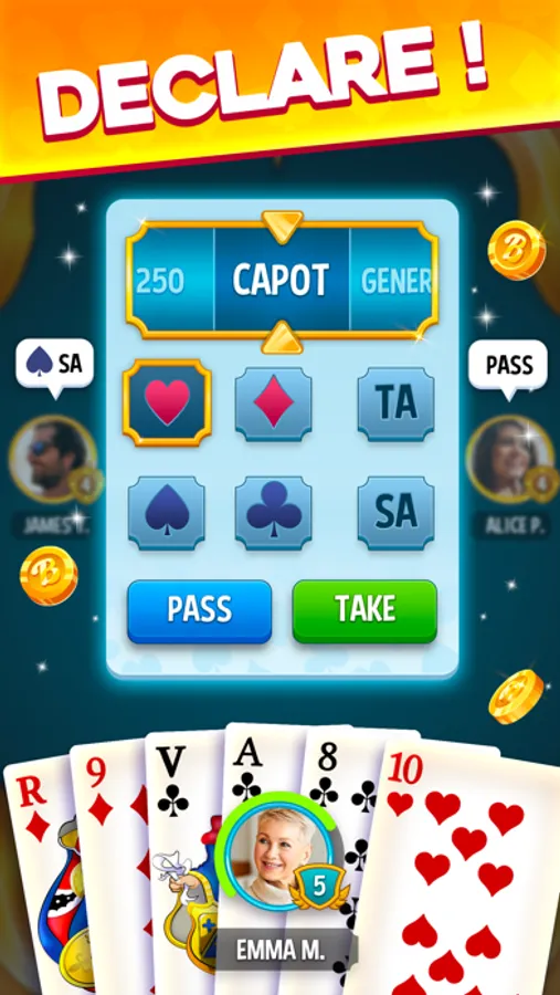 Belote: La Déf is the new Belote and Coinche game dedicated to all fans of the classic card game.