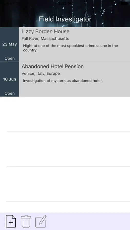 Keep track of your investigation, app ideal for various fields of research and investigation, open cases, add clues, take pictures, write logs.