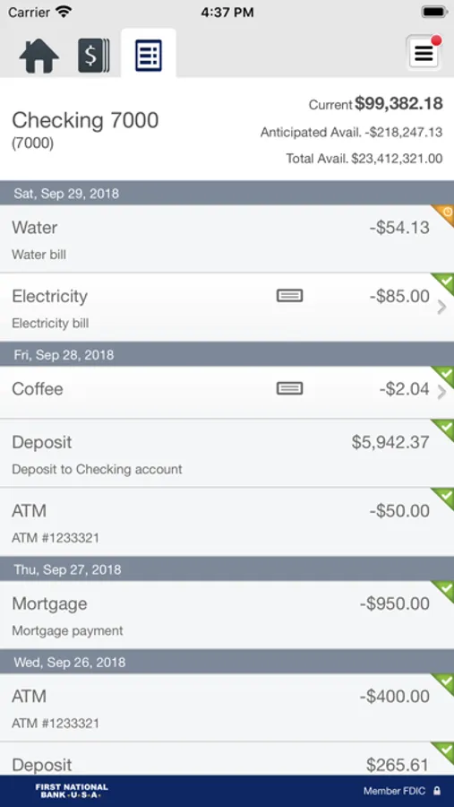 With your First National Bank USA app, managing your finances from you SMART device is now easier and more convenient. You can securely take your bank with you and access information where ever you are located. The many features are listed below: