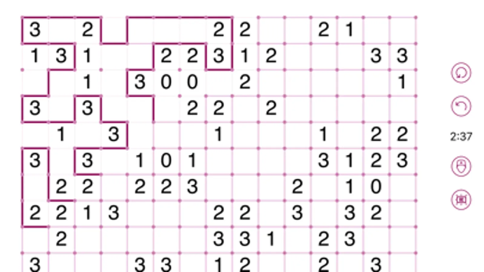 - Game Automatically removes extra walls around completed 1's, 2's and 3's