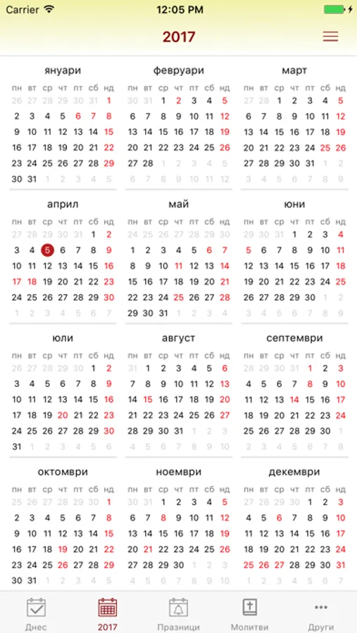 Приложението е базирано на официалния Православен календар на Българската Патриаршия за 2023 година.