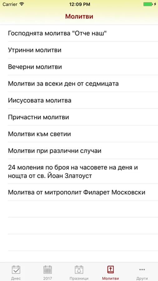 Някои важни молитви, като: Утренни молитви, Вечерни молитви, молитви преди и след Причастие, молитви при различни случаи, молитви към Светии, молитви за всеки ден от седмицата и др.;