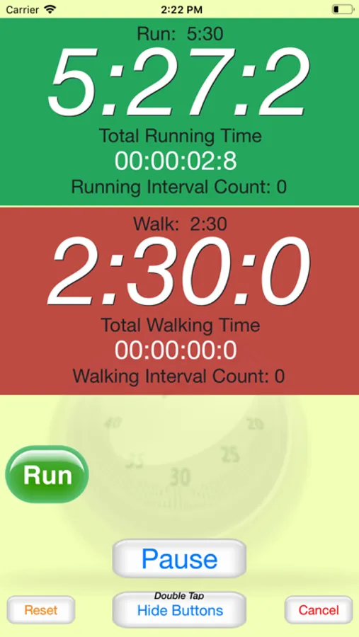 "I bought this app for run/walk timing. It does the job great -- has preset interval options but is also easy to customize. Has separate alert sounds for each interval segment. Doesn't have a bunch of bells & whistles -- which I appreciate. It's simple & intuitive so I can just run."