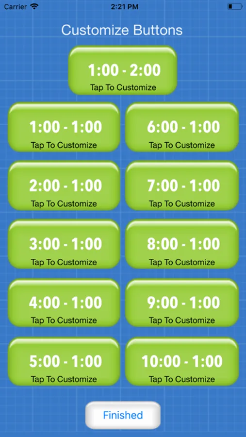 The app comes preset with all the original 11 button times with your customized times just a few taps away!