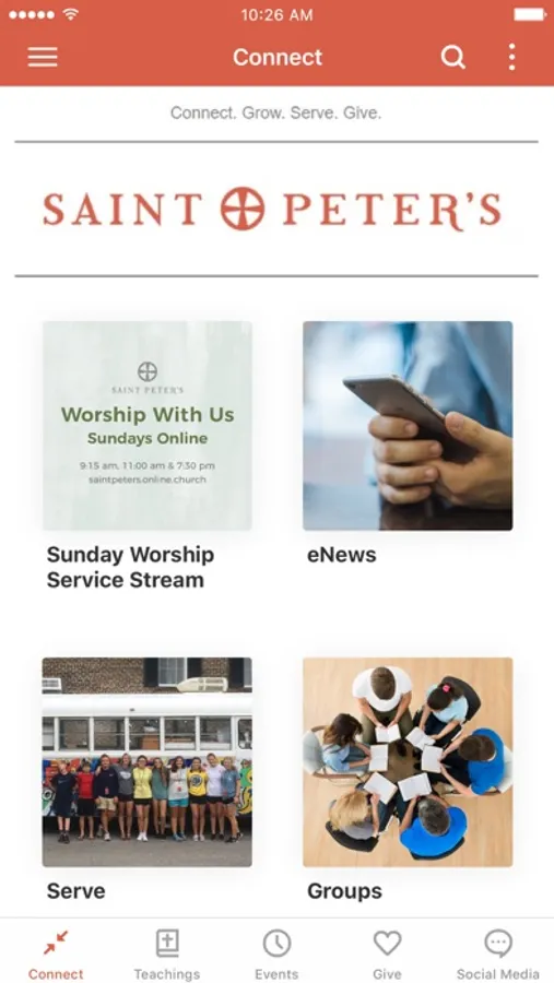 The Saint Peter's Church App was created with the Subsplash App Platform.
