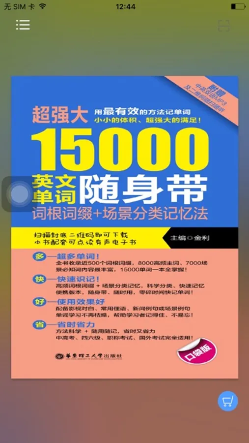全新的移动端“15000英文单词随身带”App,在完整还原纸书内容基础上,新增有声点读功能,邀请知名老师配音,还原逼真的英语语言环境,营造绝佳的轻学习氛围,随时随地看听学,尤其适合白领、学生等利用碎片时间学习!