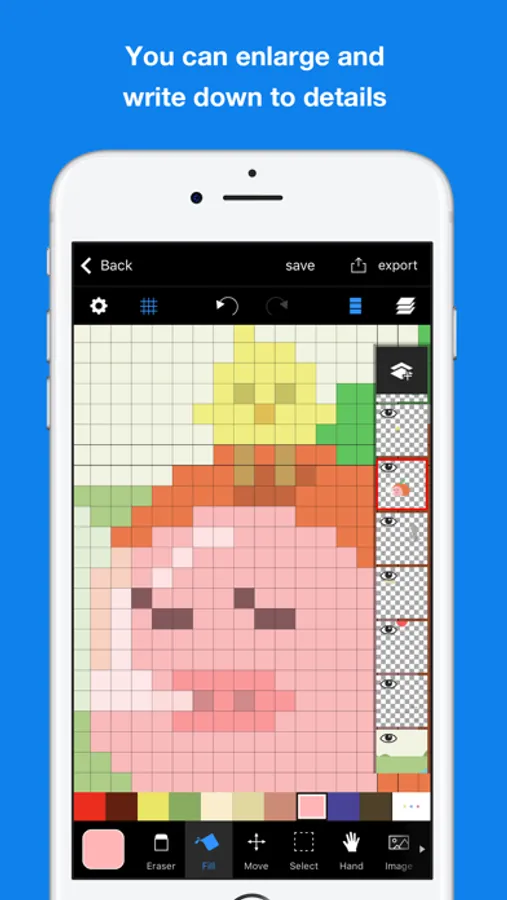 This is an app which pursue the stress-free and intuitively drawing of pixel art.