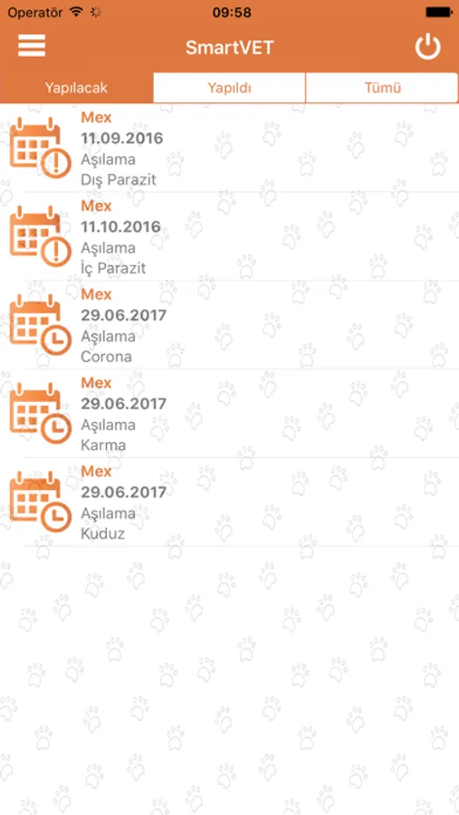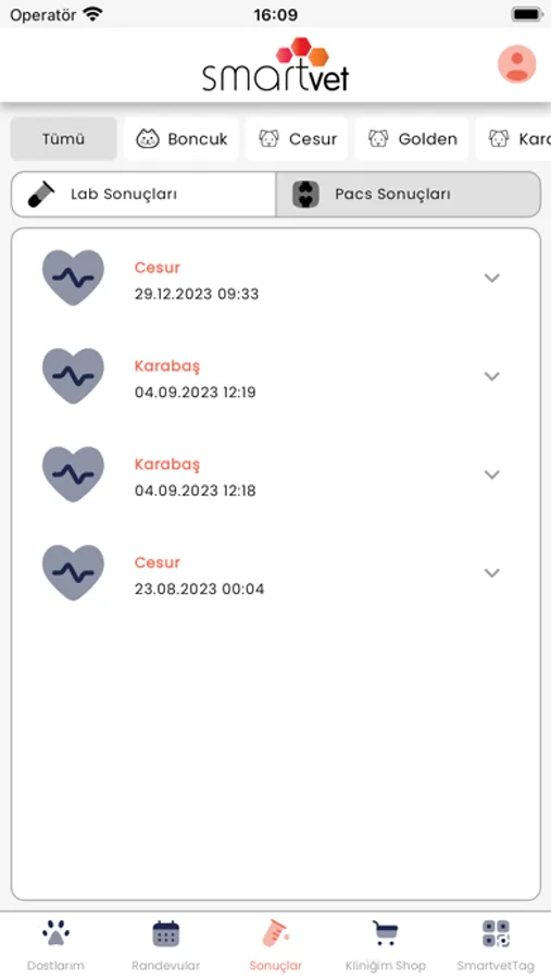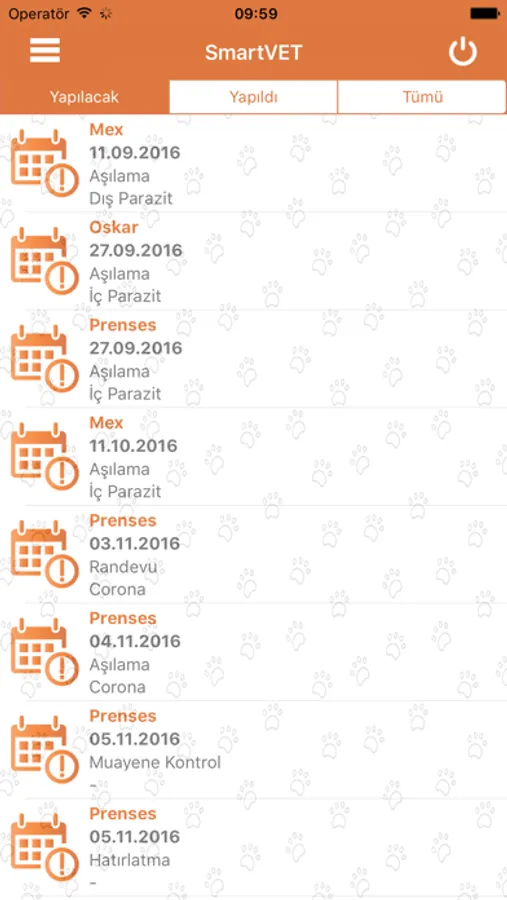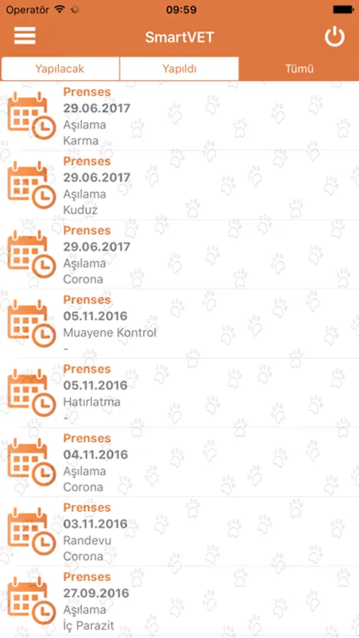 Aşı, operasyon ve diğer tüm randevularınızı Smart Vet mobil uygulaması üzerinden takip edebilirsiniz.
