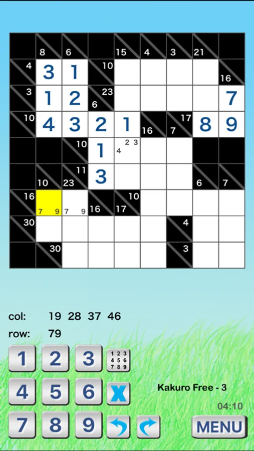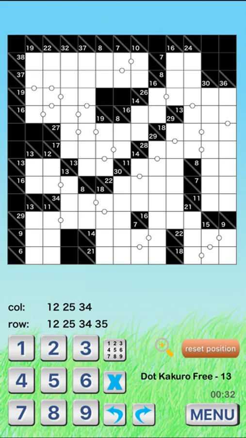 Kakuro is one of the oldest logic grid puzzles. Kakuro is like a crossword puzzle with numbers. Each word must add up to the number provided in the clue above it or to the left. A given number can only be used once in a word. Every kakuro puzzle has one and only solution, and can be solved through logic alone.