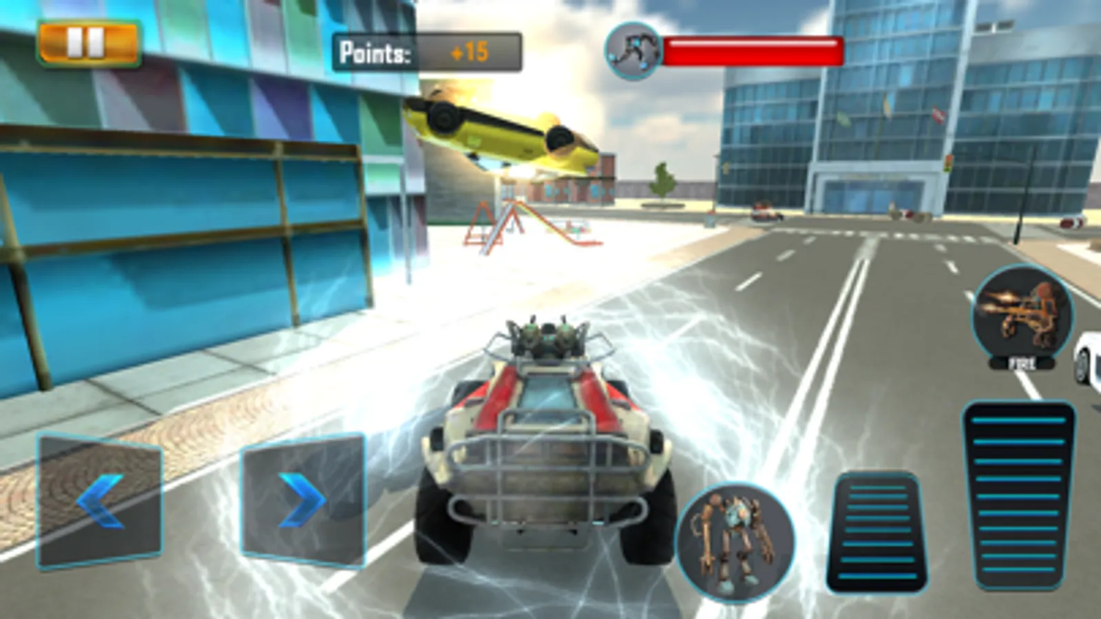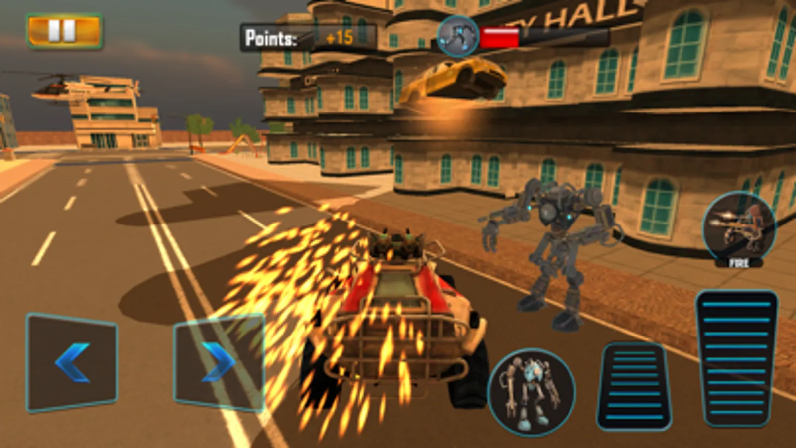 Play as a hybrid RobotCar killing machine to liberate your race from human domination! Prevent your destruction and show those puny humans who’s boss! Use your ultimate strength, laser function, and iron fists to clash with police forces in your way to take the city! Transform your robot into a muscle car for additional racing and demolition features. Chase down your foes and defeat them with your powerful engine and speeding abilities! Fire at humans, vehicles, cops, and other pro-human RobotCars! With special attacking powers, such as the Fire Blast, Super Kick, Punch, and Jump, you’ll be invincible! Destroy all your opponents before they get the chance to crush you.