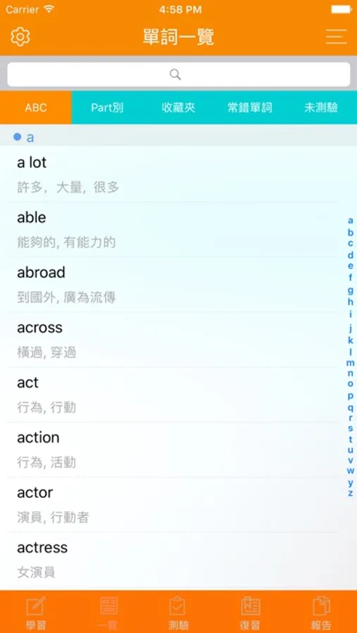・收藏單詞:可根據收藏單詞的等級自由組合測驗範圍