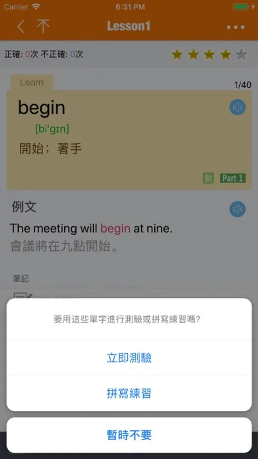 學完每課後,你可以通過測驗檢驗自己的學習成果,對於難記的單詞可以反復學習。