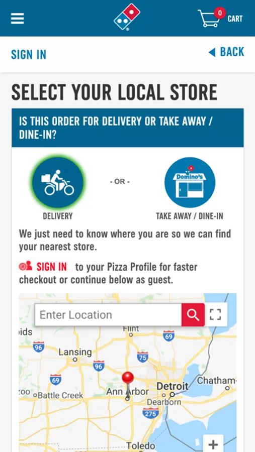 · Create a Domino's Pizza Profile to easily access to your saved info and recent orders (not required)