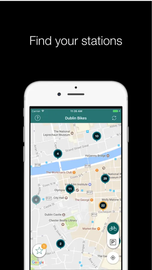 Dubikes helps find nearby Dublin bike stations based on your current location, it provides real-time information of available bikes, parking spots at a glance. It also allows you to add a station to the favourites for a quicker check!