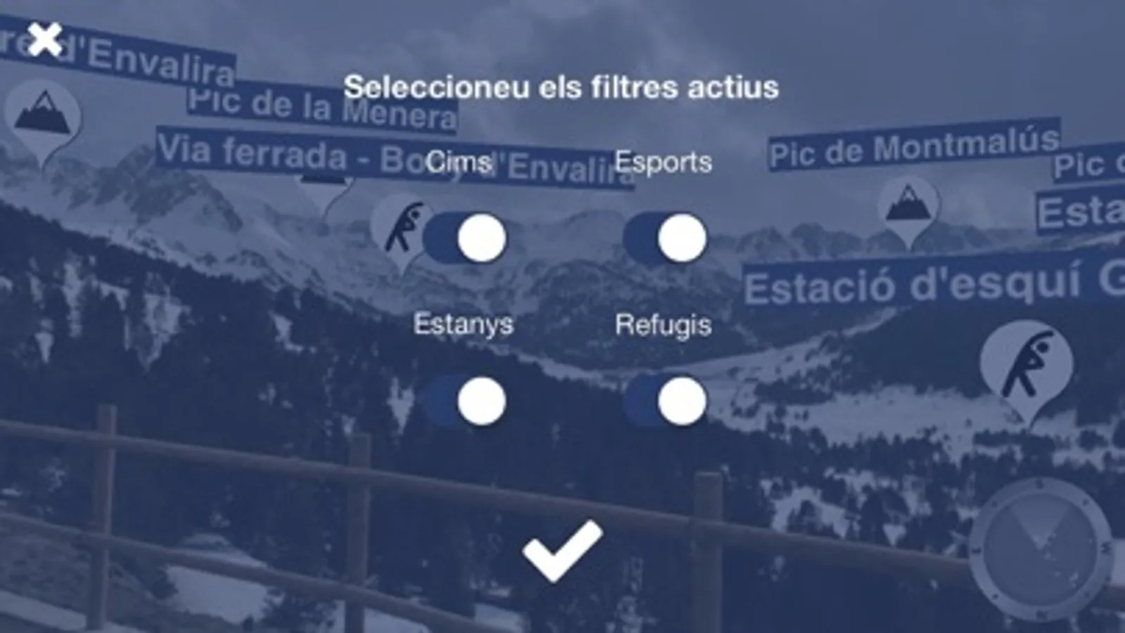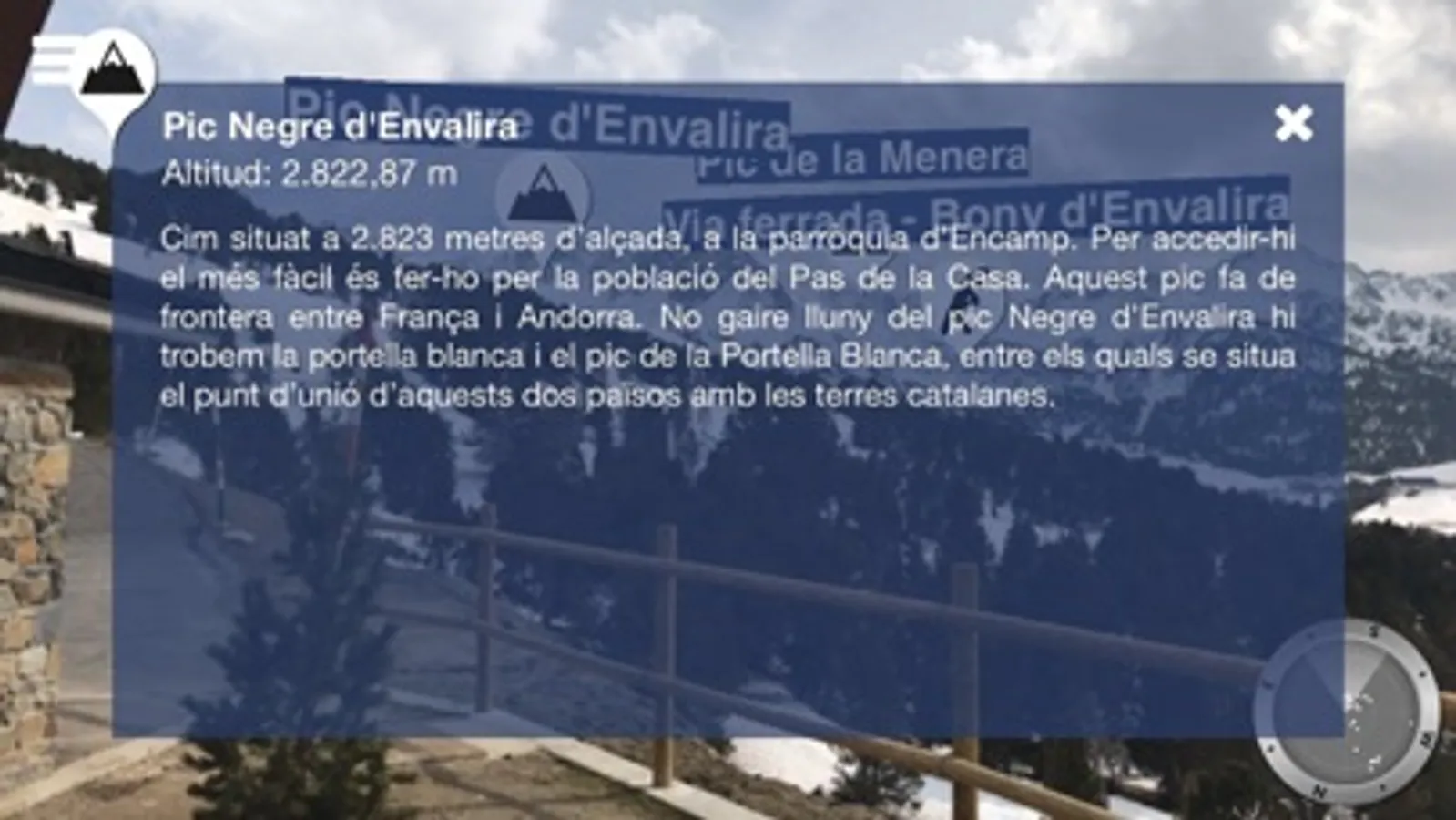 In the first version, the app includes information about the points of interest that can be identified from the viewpoint at the Envalira mountain hut.